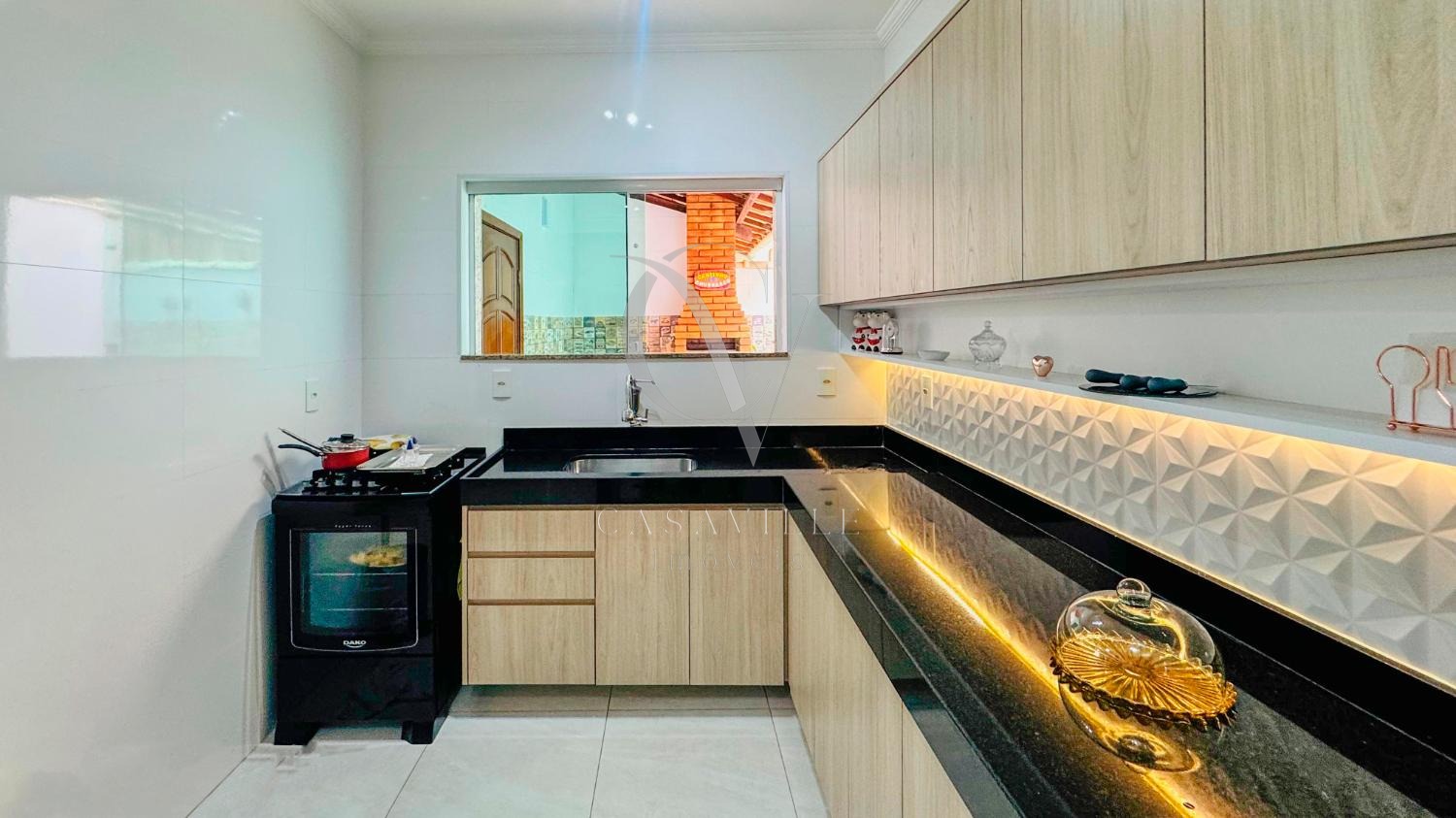 No piso superior, encontram-se três quartos, incluindo uma suíte. Todos os ambientes foram decorados com móveis planejados de alta qualidade, oferecendo conforto, sofisticação e aquele agradável cheiro de novo. A casa ainda conta com vagas cobertas para dois veículos e descobertas para outros dois.